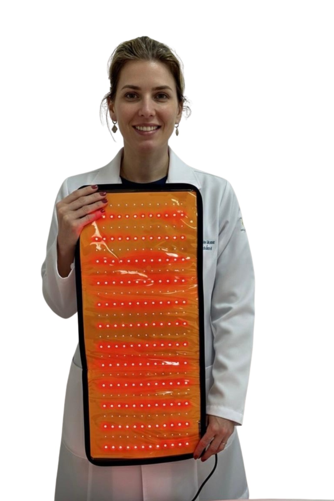 Placa com 288 LEDs, sendo 144 deles emissores de luz vermelha e 144 emissores de luz na região do infravermelho 288 LEDs: Possui 4 placas com um total de 288 emissores de luz sendo 144 com comprimento de onda de 660 +/- 20 nm e 155 com comprimento de onda de 850 +/- 20 nm.